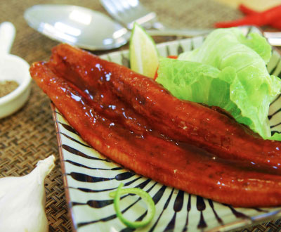 經過烘烤、蒸煮再烘烤的蒲燒鰻魚,淋上特製的日式醬油,鮮嫩的魚肉搭配鹹鹹甜甜的醬汁,滑嫩鹹香超下飯,充分加熱後即可食用,可做成鰻魚丼飯、鰻魚壽司等…